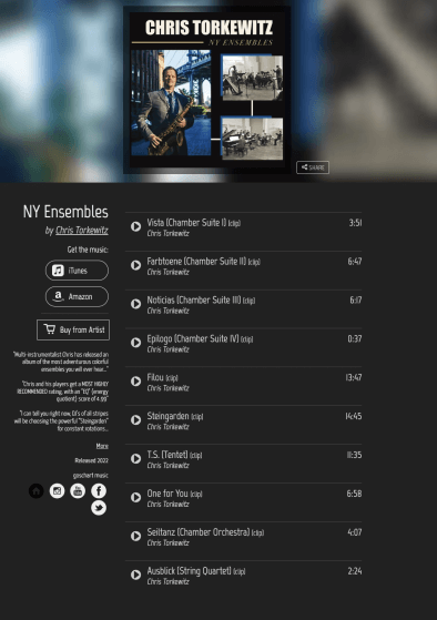 NY Ensembles took a long time to be released but its rewarding music is timeless, quite modern while being accessible, and unique. It features Chris Torkewitz’s very individual writing at its best.